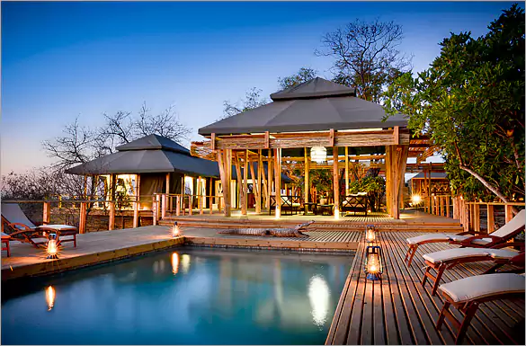 Simbavati Hilltop Lodge offers panaramic bush views towards the Drakensberg mountains, a circular bar and convivial fire-pit, all with stunning birds-eye views and spacious private decks with a Sala pavilion with daybed for each suite.